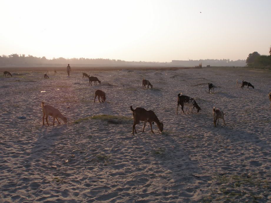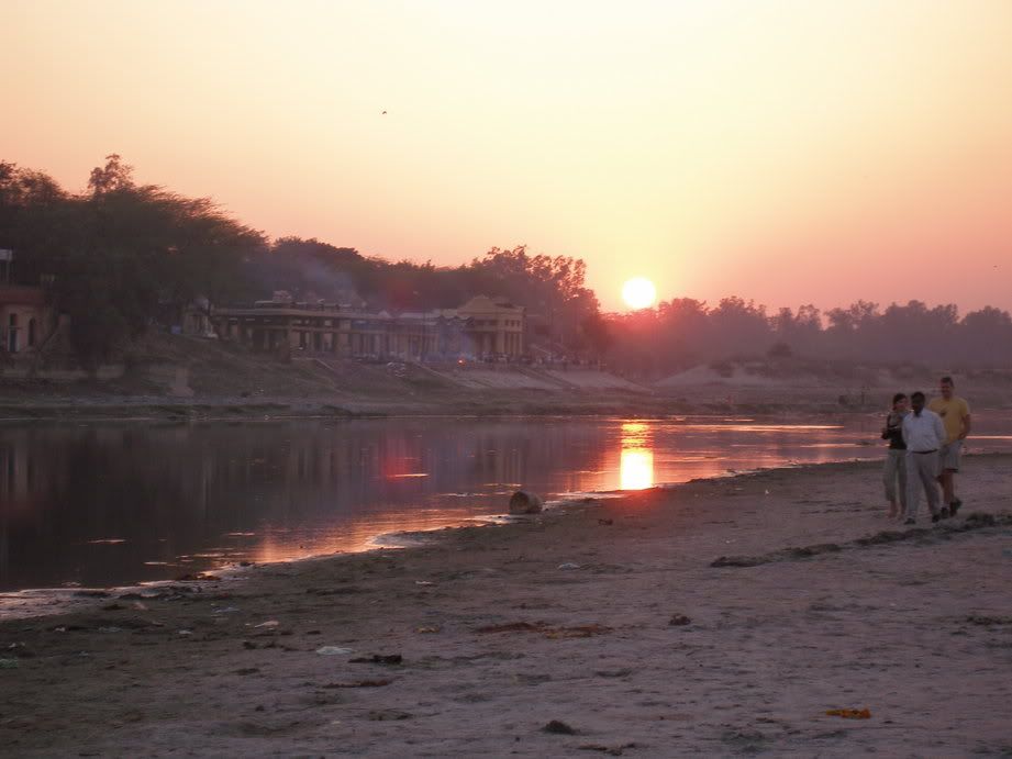 Next we drove to a park behind the Taj Mahal, where people gather to watch the sunset. It was a tranquil place - a sandy beach that is under water during the monsoon season - separated from the imposing Taj by a small river.